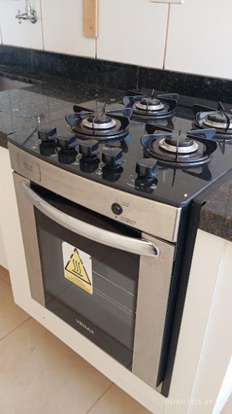 • Cozinha com armários planejados, cooktop e forno embutido